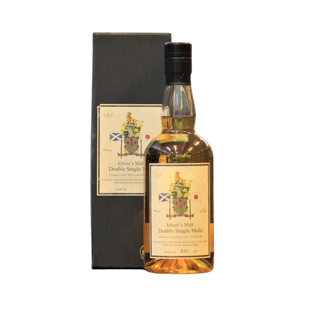 As its name suggests, Ichiro's Malt Double Single Malts is a vatting of two types of single malt whisky: A Japanese Single Malt Whisky distilled in 2008 and A Scottish Single Malt Whisky distilled in 2007. In the cask in 2008, both whiskies were matured in Japan. Bottled at cask strength ABV of 62%, only 500 bottles were released. This bottle is #332 of 500. A perfect example of the blending skills of Ichiro Akuto, for which he has won several awards globally.