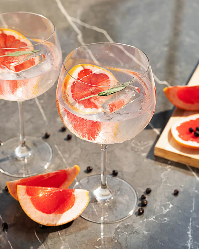- A slice of red grapefruit and a sprig of sage for garnish