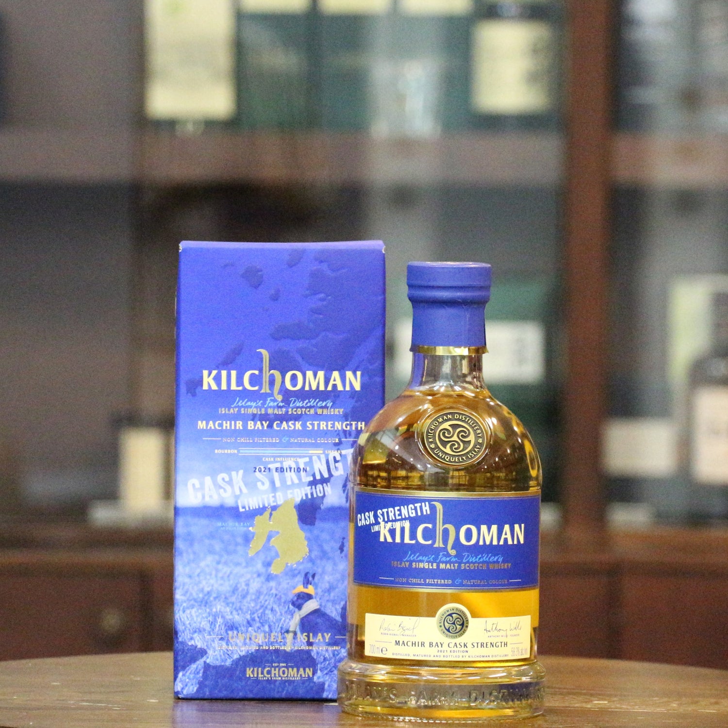 Kilchoman 旗艦店。主要在前波本桶中陳釀(約 10% 為 Oloroso 雪莉桶)。 2024年IWSC銀獎和2012年IWSC金獎。 2024年烈酒商業獎金獎。 2016年IWSC最佳艾雷島單一麥芽威士忌,在2022年IWSC獲得98分,並榮獲「傑出金獎」。